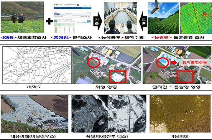 농관원이 충북대와 공동 연구한 결과, 드론으로 촬영한 영상을 활용하면 조사원이 직접 현장점검을 실시하는 것보다 점검 기간은 65% 단축, 인력은 65%, 예산은 44%의 절감 효과가 있는 것으로 나타났다.