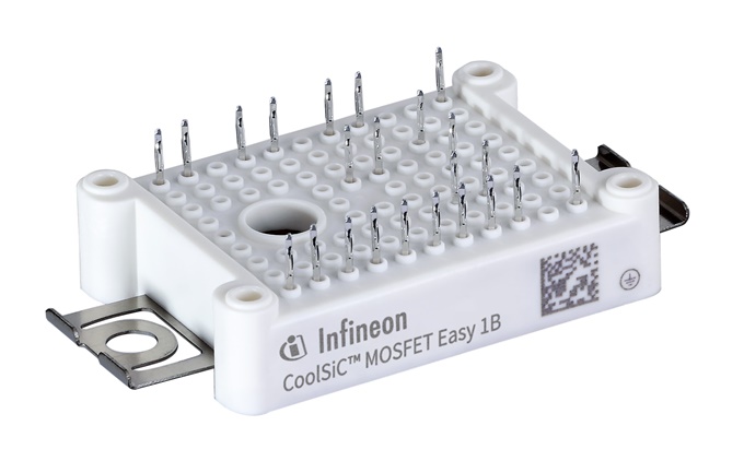 전기차에 실리콘 카바이드 (SiC)가 사용되면 효율, 전력 밀도, 성능을 높일 수 있다. 특히 800V 배터리 시스템 및 큰 배터리 용량과 함께 사용되면 SiC는 인버터 효율을 높여서 주행 거리를 늘린다. 인피니언 테크놀로지스는 CoolSiC 자동차용 MOSFET 기술을 채택한 EasyPACK 모듈을 출시한다. 이 모듈은 8mΩ/150A 전류 정격의 1200V 하프 브리지 모듈이다.