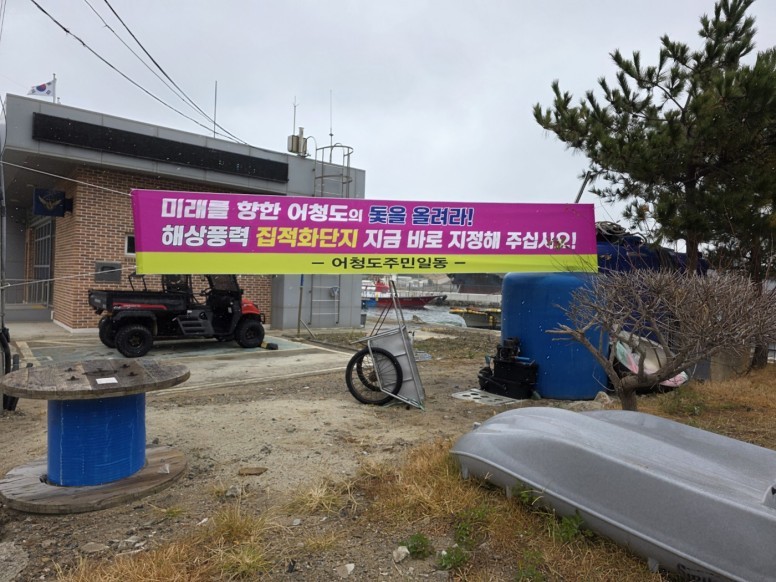 어청도 이상철 어촌계장은 "주민 100%가 해상풍력 사업을 찬성한다"면서 "정부의 집적화단지 지정 및 신속한 사업 추진을 통해 어청도가 발전하고 삶의 희망을 찾기를 바라는 주민 염원을 담아 현수막을 걸었다"고 전했다.