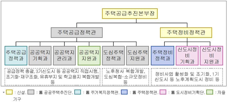 공급본부는 21년 동안 임시 조직으로 운영돼 온 국장급 조직인 공공주택 추진단을 중심으로, 국토부 내에 분산돼 있던 주택공급 기능을 통합해 신설된 실장급 상설 조직이다. 택지 개발, 민간 정비사업, 노후 계획도시 재정비 등 주택공급 전반을 하나의 체계로 묶어 운영함으로써, 주택공급을 단기적 대응 과제가 아닌 국가적 핵심 과제로 격상시켰다는 점에서 의미가 크다.