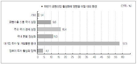 한편 하반기 금형산업 활성화에 가장 큰 영향을 미칠 대외 경영환경에 대부분의 업체가 한 목소리로 ‘대기업 투자 및 개발 물량 증대’를 외쳤다.