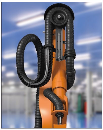 이 시스템은 로봇 머리에서 체인의 루프 형성을 방지하는 동시에 3D 에너지 체인을 안정적으로 가이드 한다.