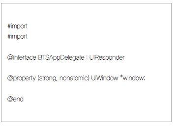 BTSAppDelegate.m 및 BTSAppDelegate.h 파일은 블루투스 테스트 프로젝트 자동 생성된 파일이며 앱의 기본 동작을 담당한다. BTSViewController.h 는 뷰 콘트롤러 소스로 실제 UI 버튼 및 연결 정보를 처리하는데 사용한다. CBCMCtrl.h및CBCMCtrl.m 파일은 블루투스 연결 관리 클래스로써 coreBluetooth 프레임웍에서 블루투스 연결 관리를 위해 사용하는 centralManager에 대한 동작 및 상태 정보를 관리하는 클래스로 구성되었다.