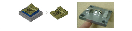 ② 3D 프린터로 금형을 제작할 경우 표면이 거칠고 후가공이 필요하다는 단점을 NC 가공으로 보완했지만, Base plate와 제품 간의 분리를 위해 와이어컷 가공 등이 필요하다는 단점이 있다.