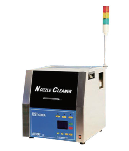 KC700은 고속 칩마운터에 장착되는 Ø0.1미만의 미세 노즐의 세척이 가능한 노즐 세척기다. 고압의 공기와 세척제를 혼입해 생성한 미스트를 분사해 노즐을 세척하는 기술을 적용했으며, 고압 미스트에 의한 세척력으로 종전의 수작업이나 초음파 세척으로 하지 못하던 미세 노즐의 세척을 가능하게 해 준다. 또한 한 번에 24개의 노즐을 통해 동시에 세척할 수 있다.