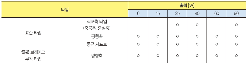 DSC 시리즈는 CLOSED LOOP 제어에 의한 높은 신뢰성과 위상 제어 회로의 디지털화에 의한 속도 제어기를 소형화한 AC 스피드 컨트롤 모터이다. 부하 속도는 변동률 ±1%(참고 수치)로 안정된 속도 제어가 가능하다. 또, 위상 제어 방식이어서 일반적으로 사용되는 인버터 제어 제품보다 저소음이다. DSC 시리즈의 제품 라인업은 표 1과 같다.