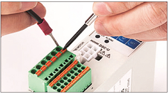(4) 간단한 배선과 접속 : 전원선이나 I/O선은 SCREWLESS CONNE-CTOR, 모터와 컨트롤러 간의 커넥터로 간단한 배선과 접속을 할 수 있다(그림 6 참조).