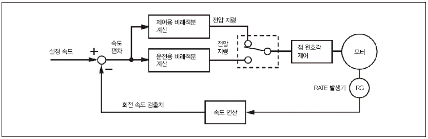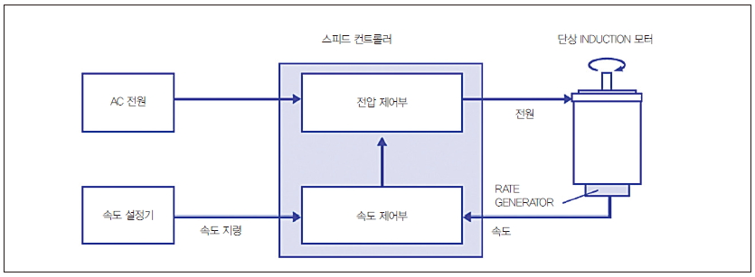 스피드 컨트롤러는 설정 속도와 회전 속도가 같아지도록, 위상 제어에서 모터 인가전압의 크기를 조정하며 속도를 제어한다(그림 8 참조).