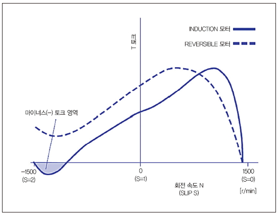 그림 10. INDUCTION 모터와 REVERSIBLE 모터의 회전속도-토크 특성(50Hz)