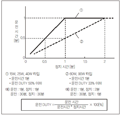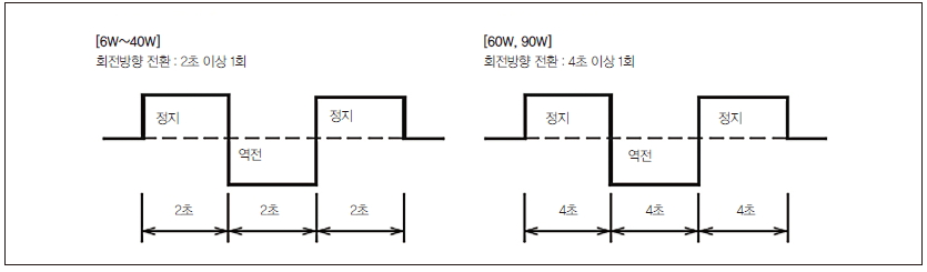 또 모터 사용 주위 온도가 낮은 경우나 모터 온도가 90℃ 이하인 조건에서는 보다 짧은 반복주기에서도 순간 정/역 운전이 가능하다.