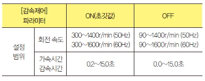 표 3. [감속제어] 파라미터 설정 범위 차이