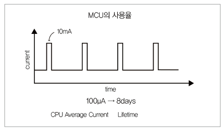 MCU 전력 소비를 최소화하기 위해 MCU가 동작하되 가능한 한 최대의 휴면 상태를 유지하도록 하는 것이 관건이다. 활성 상태와 완전 휴면 상태에서 MCU의 전력 소비 차이는 그림 2에 제시된 바와 같이 활성 상태에서 한 자리수 또는 두 자리수 밀리암페어부터 에너지 효율성이 가장 높은 MCU의 경우 휴면 상태에서 1마이크로 암페어 이하까지 3자리수 이상이 될 수 있다.