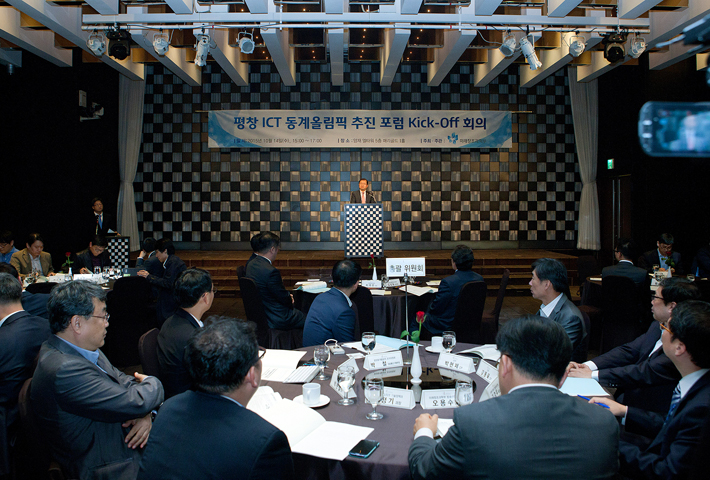 ICT 기술 및 수출 전문가 60여 명(산업계, 연구계, 유관기관, 정부 부처 등)과 평창동계올림픽 조직위 김상표 부위원장 등이 참석한 가운데 10월 14일 제1차 '평창 ICT 동계올림픽 추진포럼'이 엘타워에서 개최됐다. 이번 포럼은 5월 추진계획의 후속조치로, 민·관의 전문가들이 세부실행계획을 논의·도출하기 위해 미래창조과학부(이하 미래부)에 의해 구성됐다.
