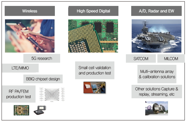 이러한 모듈형 장비는 멀티 에미터 테스트 신호와 위상 배열 T/R 모듈 네트워크 및 광대역 위성 통신에서도 이용될 수 있다.
