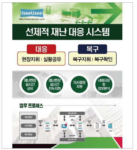 글로텍의 스마트 재난상황관리시스템은 스마트폰, CCTV, SNS, 인공위성 영상, 기상 정보 및 지리 정보 등을 통합하여 관할 지역 내 모든 재난 안전 정보를 한눈에 파악할 수 있는 통합 모니터링 시스템이다. 특히 실시간 동영상 스트리밍 기반의 양방향 지휘 통제 기술은 재난 안전사고 발생 시 최적의 상황 대응을 할 수 있도록 의사 결정을 지원하는 핵심 기술로 주목받고 있다.