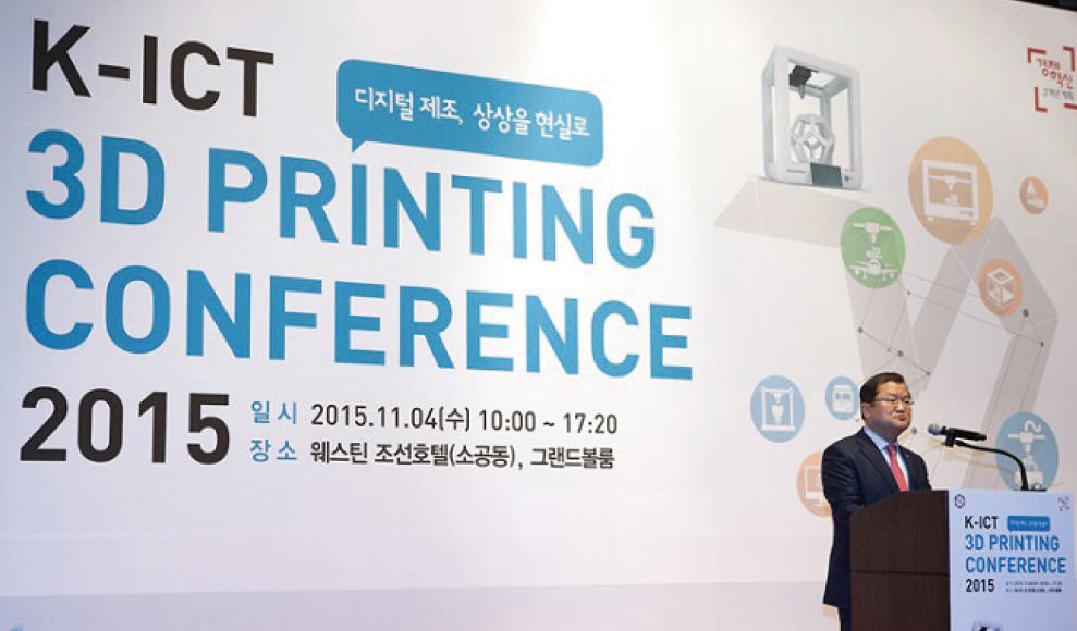 미래창조과학부는 3차원 프린팅 산업 생태계 활성화를 목적으로 K-ICT 3D Printing Con-ference 2015를 지난 11월 4일 서울 소공동 웨스틴 조선호텔에서 개최했다.
