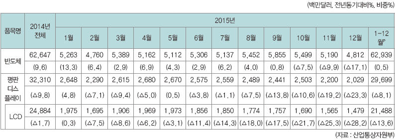 ▲ 표 1. 반도체, 평판 디스플레이의 수출 추이