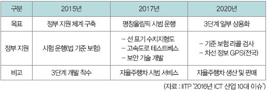 ▲ 표 3. 우리나라 자율주행 스마트 자동차 계획