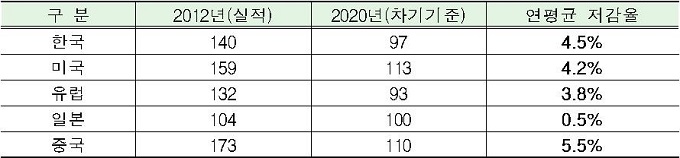 <출처: 환경부, “2020년까지 자동차 평균 온실가스·연비…선진국 수준 강화” 2014. 9. 11 >