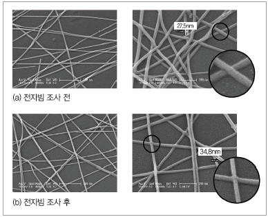 ▲ 은 나노와이어의 전자빔 조사 유무에 따른 특성