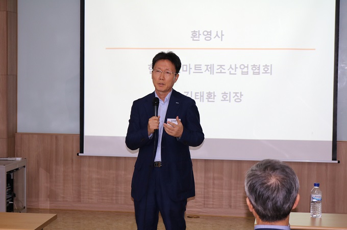 ▲인사말을 하고 있는 한국스마트제조산업협회 김태환 초대 회장.