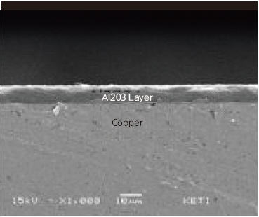 KETI가 개발한 Metal PCB의 방열 기술은 에어로졸 증착법을 이용해 상온에서 Al2O3, AlN 등의 세라믹 분말을 금속기판 상에 충돌시켜 치밀한 세라믹층을 형성함으로써, 기존 Metal PCB의 절연층에 비해 열전도도가 우수한 세라믹 절연층을 형성되도록 한 것이다.