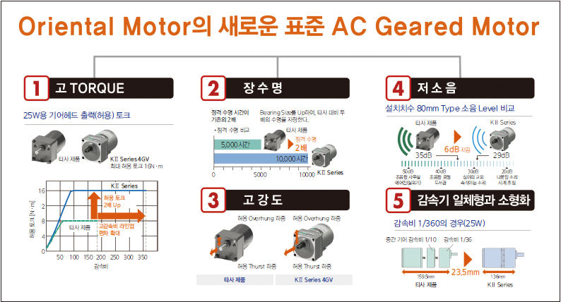AC 소형 표준 모터는 각종 산업 기기의 동력원으로 폭넓은 분야에서 사용되고 있다. 특히, 오리엔탈모터의 제품은 업계 표준으로 오래전부터 많은 고객의 사랑을 받아 왔다.