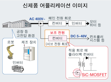 최근 에너지 절약에 대한 의식이 높아짐에 따라 범용 인버터 및 제조 장치 등 산업기기에 있어서 저전력화를 실현하는 파워 반도체가 채용되고 있다. 이러한 산업기기에는 메인 전원 회로 뿐만 아니라, 제어 IC 및 각종 시스템 구동용으로 전원전압을 공급하는 보조 전원이 내장되는 경우가 많으며, 이러한 보조 전원에는 내압 1000V 이상의 Si-MOSFET가 널리 채용되고 있다.