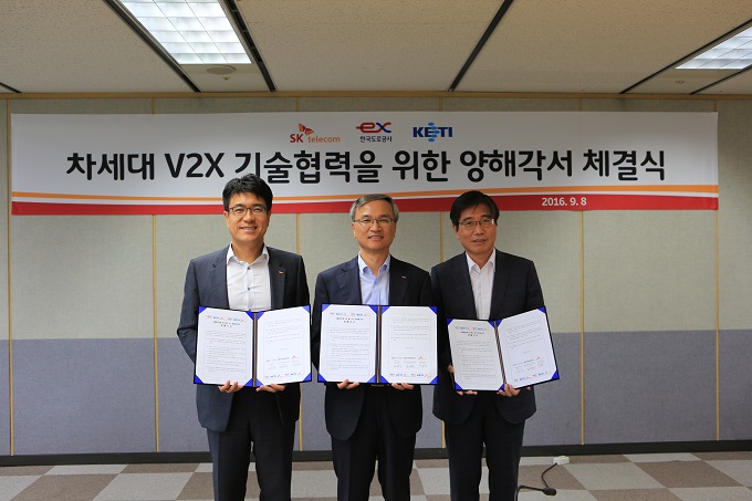 한국도로공사는 전자부품연구원, SK텔레콤과 자율협력주행을 위한 차세대 차량통신 기술협력 협약을 맺었다고 8일 밝혔다.