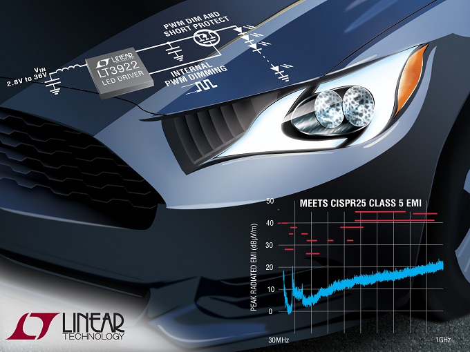 LT3922의 입력 전압 범위는 2.8V ~ 36V로서 자동차, 산업용, 건축 조명 같은 매우 다양한 애플리케이션을 초점을 맞추고 있다. 리니어 테크놀로지 고유의 사일런트 스위처(Silent Switcher) 토폴로지와 대역 확산 주파수 변조 기술이 결합되어 EMI 문제를 최소화한다. LT3922는 자동차용 전원 입력에서 최대 34V, 350mA의 백색 LED를 10W 이상 구동 가능하다.