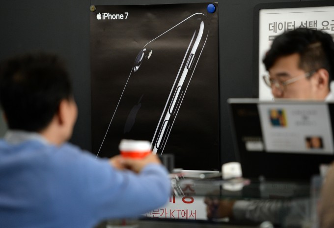 ▲애플의 새 스마트폰 '아이폰7', '아이폰7 플러스' 예약 판매 첫 날인 14일 서울 세종대로 KT스퀘어에 아이폰7의 홍보 포스터가 붙어 있다. 2016.10.14/뉴스1 © News1 오대일 기자
