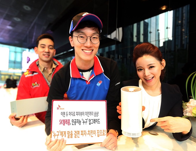 SK텔레콤은 음성인식 기반 인공지능서비스 ‘누구’를 통해 2일부터 도미노피자·BBQ 배달 주문이 가능해졌다고 밝혔다.
