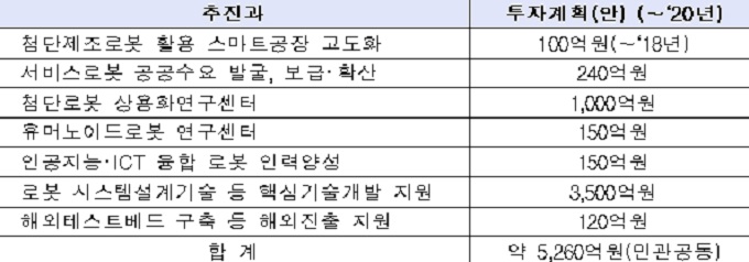 또한, 인간형로봇(휴머노이도) 분야에서 세계 선도기술을 확보하고 전문 연구인력을 양성하기 위해 ‘휴머노이드로봇 연구센터’를 12월에 KAIST에 설치하고 2020년까지 향후 5년간 150억 원을 투자할 계획이다.