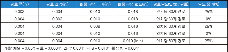 ▲ 표 1. 한 레이어에서 경로 밀도에 PCB 설계가 미치는 영향