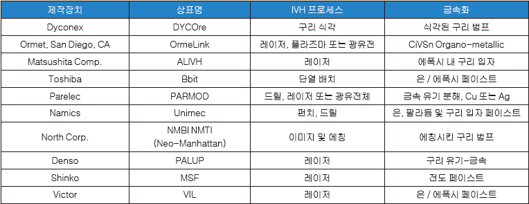 ▲ 표 2. 충전된 고체 IVH를 활용한 대체 HDI 기술[8].