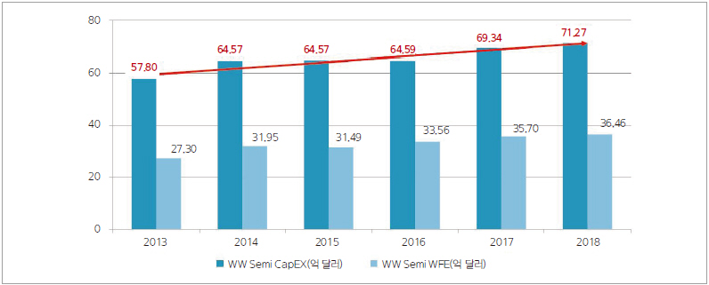 ▲ 그림 2. 전세계 반도체 CAPEX/WFE 추이 (자료: AMK)
