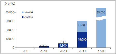 ▲ 그림 3. 자율주행 기술 발전에 따른 기회 시장 규모