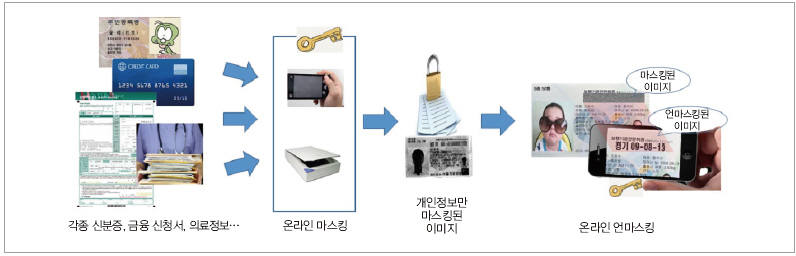 증강형 프라이버시 마스킹 스마트폰으로 신분증을 촬영하면 주민등록번호와 같은 개인정보를 자동으로 찾아 비식별(Masking) 처리한 뒤 파일로 저장해 개인정보 노출 사고를 방지해 주는 보안기술이 국내 연구진에 의해 개발됐다.