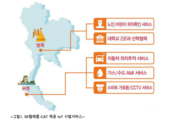 SK텔레콤과 CAT사는 이번 계약을 통해 태국 수도인 방콕과 유명 휴양지인 푸켓 전역에 저전력광역네트워크(LPWAN) 기술 중 하나인 로라(LoRa)기반 IoT 전용망을 구축한다. 오는 4월부터 태국 국민 및 관광객을 대상으로 다양한 IoT 서비스가 제공 될 예정이다.