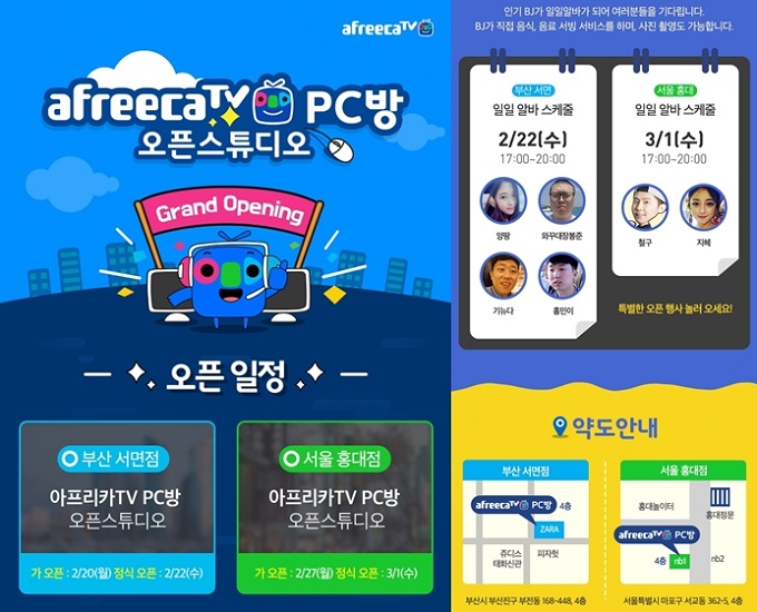 예비·신입 BJ 놀이터 아프리카TV 오픈 스튜디오가 22일 부산 서면, 다음 달 1일 서울 홍대에서 오픈한다.