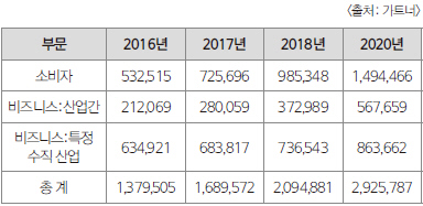 ▲ 표 2. 부문별 IoT 엔드포인트 지출 (단위: 십억 달러)