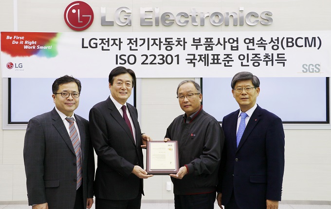 LG전자가 글로벌 인증기관 SGS인증원으로부터 전기차 부품 사업에 대한 ISO22301 인증을 획득하면서 각종 재해나 사고 발생 대응능력을 국제적으로 인증받았다.