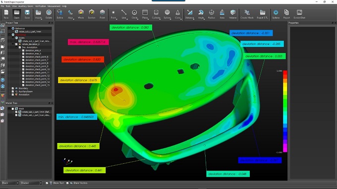 여러 유형의 측정 도구를 갖추고 있으므로 빠르고 정확한 측정이 가능하고, CAD와 스캔 데이터 간의 편차를 클릭 한 번으로 쉽게 감지할 수 있으며 다양한 컬러맵으로 표시되므로 시각적으로 편리하게 결과값을 보여준다. 또한 Mesh Tessellation, Mesh Optimization, Mesh Fix 기능을 지원하며, Report & Screen Shot 기능을 통해 PDF 파일 형식으로 풍부한 정보가 포함된 검사 결과를 그래픽으로 리포트할 수 있다.