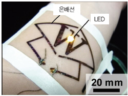 구현해 팔에 부착한 모습. 피부에서도 배선과
