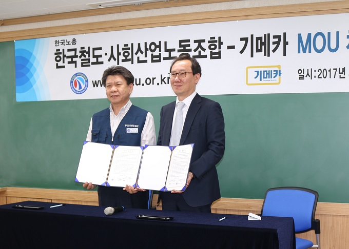 (주)기메카는 12일 서울 마포구 서교동에 위치한 자사교육장에서 한국철도·사회산업노동조합과 전략적 제휴 협약(MOU)를 체결했다.