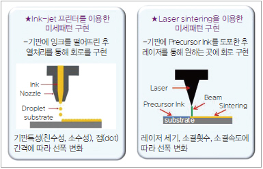 본 과제에서는 ink-jet 프린터를 이용한 미세패턴 형성 공정과 laser소결을 이용한 미세 패턴 형성을 하였다. 세부 모식도는 그림 18에 나타내었다.