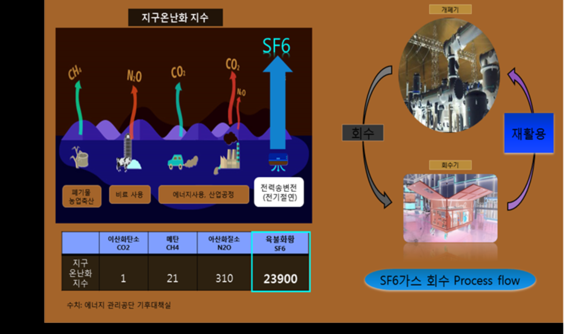 한전에 따르면 SF6가스는 지구온난화의 주범으로 알고 있는 이산화탄소(CO2) 보다 온난화지수가 무려 23,900배나 높고 대기 중에 최대 3,200년간 존재하여 유럽 등 각국에선 사용을 규제하고 있다.