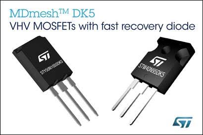 글로벌 반도체 기업 ST마이크로일렉트로닉스(STMicroelectronics, 이하 ST)가 고속 복구 다이오드가 가진 이점을 활용한 VHV(Very High-Voltage) 슈퍼정션(Super-junction) MOSFET인 전력 MOSFET MDmesh DK5를 선보였다.