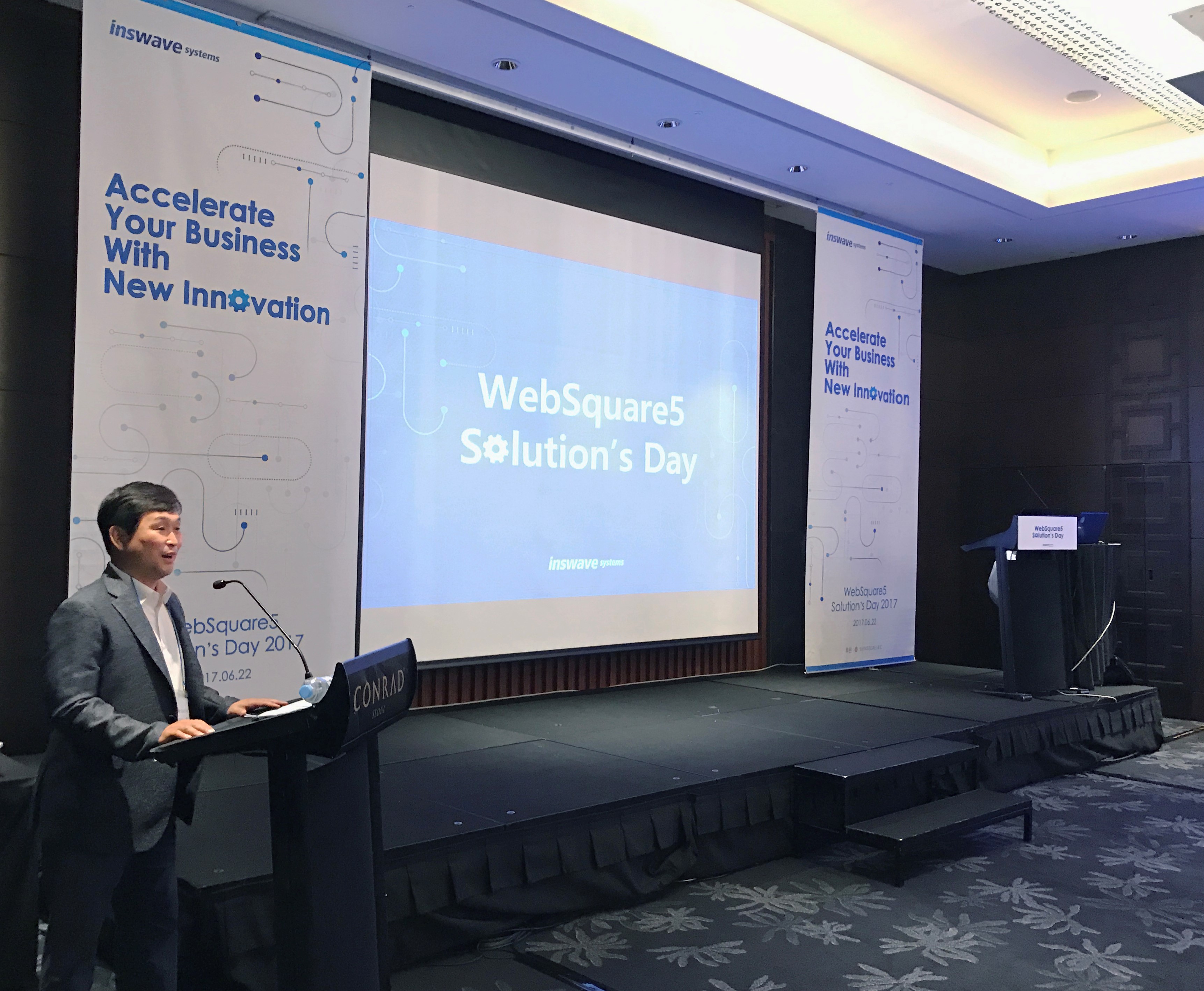 웹 표준 솔루션 업체 인스웨이브시스템즈(대표, 어세룡)가 새로운 기능이 추가된 웹스퀘어 서비스 팩2 등 신제품을 고객들에게 소개하는 웹스퀘어5 솔루션스 데이'를 22일 개최했다.