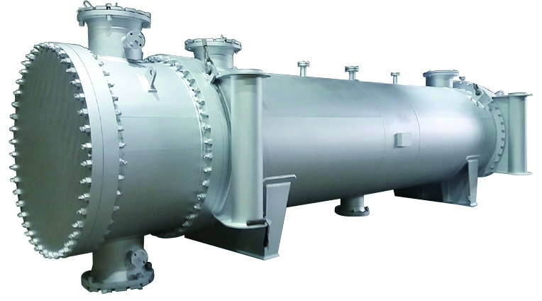 런텍은 풍부한 제품 제작 경험을 바탕으로 기본 설계부터 효율적이고 경제적인 열교환기를 제공하고 있다. 런텍의 Shell & Tube 열교환기(Heat Exchanger)는 발전소, 제철소, 석유화학 등 다양한 분야에서 액체-액체, 기체-액체의 열 교환을 위해 일반적인 형태로 사용된다. 또한 런텍의 핀튜브(FinTube) 열교환기는 기체의 승온 및 냉각을 위한 제품으로, 열전도율이 낮은 기체의 접촉 부위에 다양한 형상 및 재질의 핀을 부착해 열효율을 높였다. 공기 또는 가스 압축 시 유체의 온도를 냉각시켜 유체의 밀도를 높임으로써 압축 효율을 높이는 열교환기(Compressor Cooler)도 있다. 사진은 Shell & Tube 열교환기다.